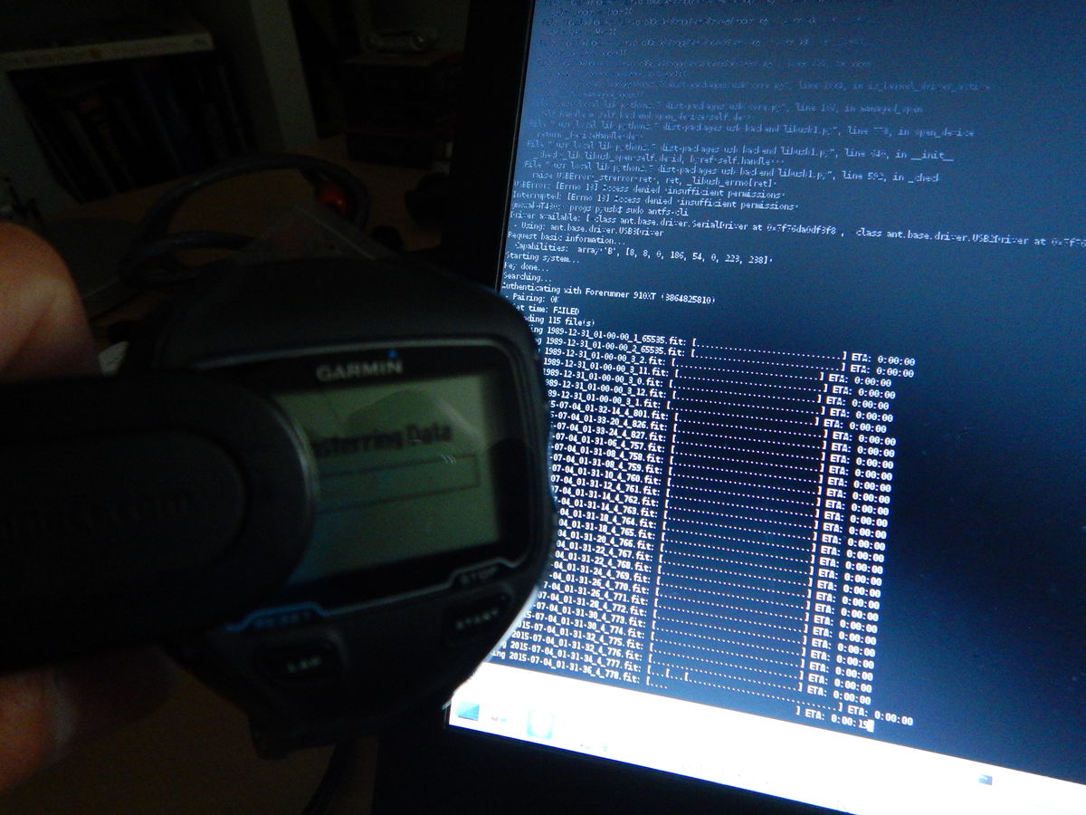 Holy molly. I thought Garmin would provide a fancy and "updatede" procedure for uploading and/or extracting data from the fancy Garmin 910XT... but no. You need to search for a while before you find the gold. First I thought you could find a garmin connect tool or plugin for Firefox, but that failed completely. Then I narrowed down my search to "forerunner 910xt linux" (without the quotation marks in google). I found some sites that suggested to download a lot of python stuff and get things directly from Git.